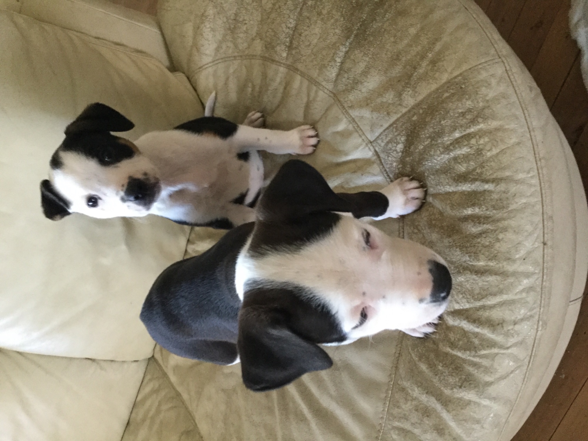 Pretty girls, Holly and Harley (with a patch over her eye) are just adorable - they’re cheeky, playful and snuggly. They are in the early stages of leash and housetraining - they’ve needed no training in the “cuddle on the lounge” department, it seems to come naturally!