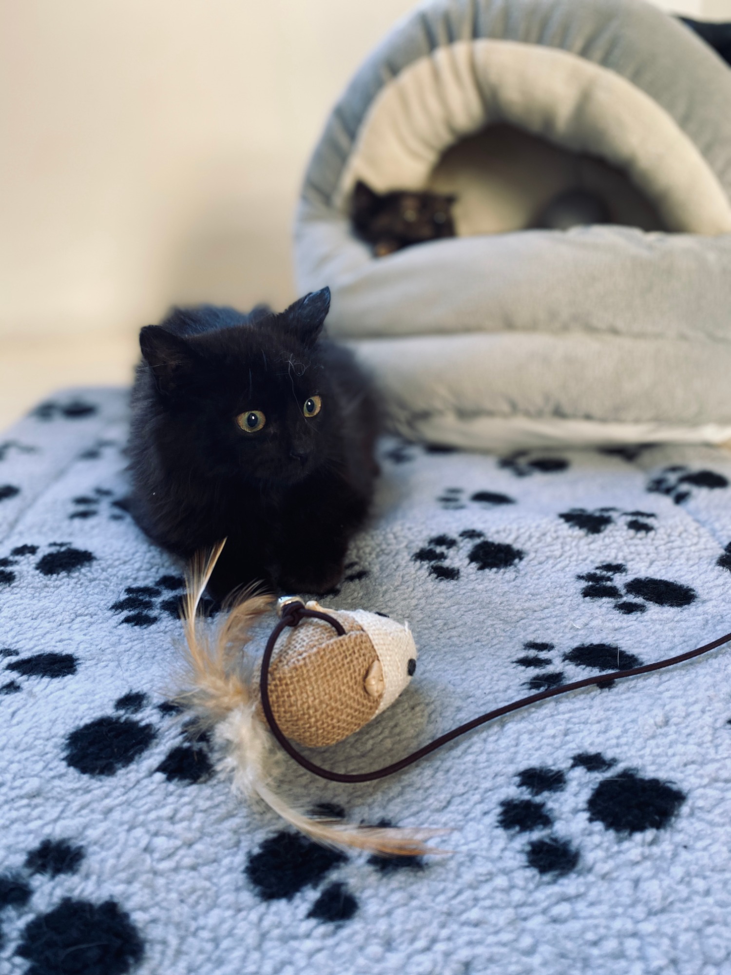 Beety is a cheeky but sweet girl looking for a furever home with her sister Kitty. Beety is the one with gorgeous all black fur. She is adventurous and loves toys.