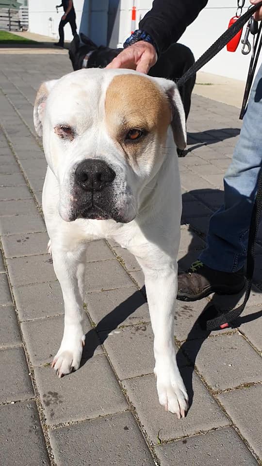 We don’t know much about him yet, but he was very friendly with our volunteers when he met them and just wanted love. He also did well meeting other dogs, so could go to a home with a similar sized friendly doggy pal pending meet and greet. He has not been tested with kids or cats.