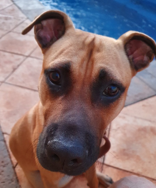 George is a big, head strong young boy ready for his new home. He is well behaved with kids (though older than 7 is ideal) and is good with cats as well. George plays well with other dogs but would suit living with an older, bigger female if her were to live with another dog. George is looking for an experienced owner of large breed dogs who will be confident amd calm. He loves the company of people, still needs a bit of training but does know basic manners.