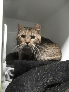 As a result of his recent experience Leopold is quite nervous (as you can see from his photo), and when he arrived at SAFE he decided to hide away. We have learned over the time he's been with us, that he is a morning cat, and, especially when his breakfast appears, he enjoys a stroke or two.