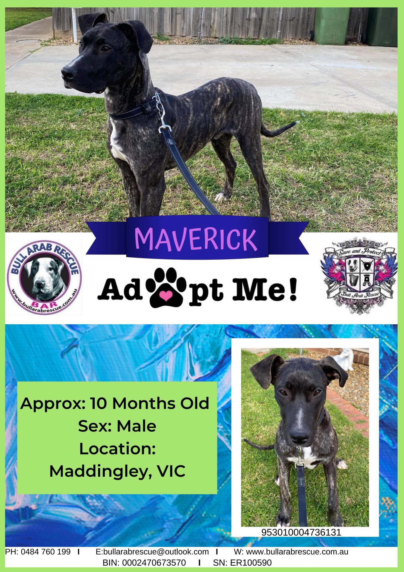 If you would like more information on Maverick or an adoption application, please email bullarabrescue@outlook.com