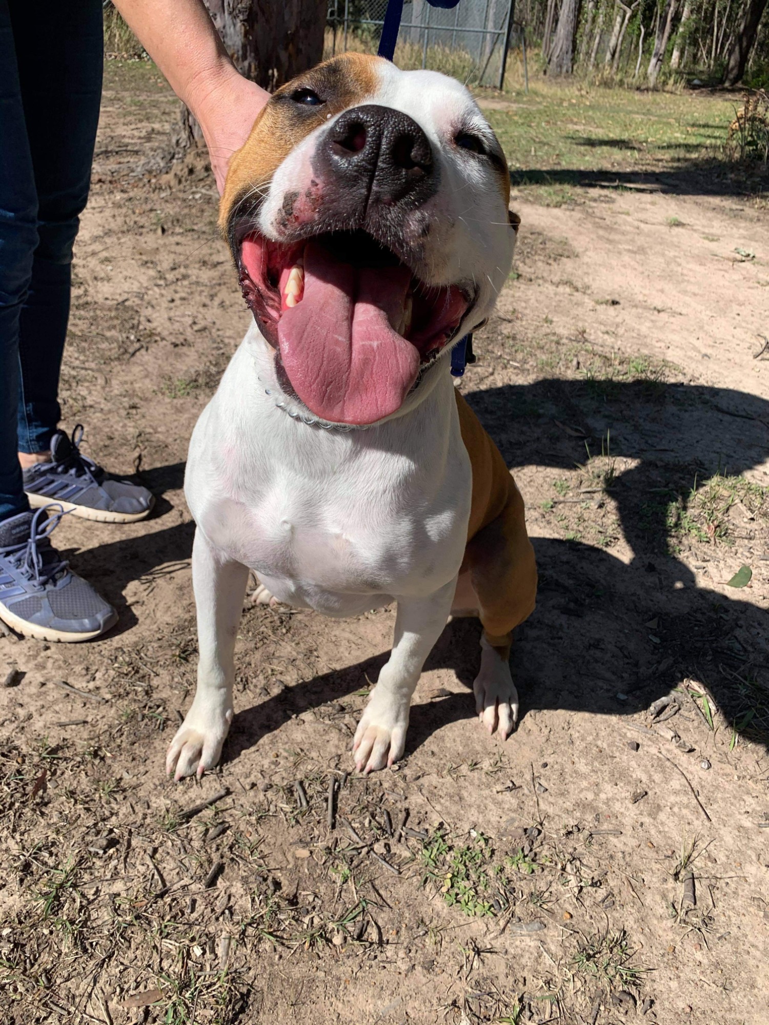 Meet lovable Robbie, a 3.5 year old male Bull Arab x. Robbie is a large and playful dog but is not aware of his own size. He loves nothing more than to sit on your lap or lean for the much deserved chest and belly rub.