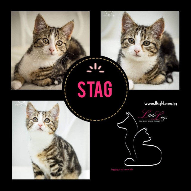 Stag is a kitten who loves a good cuddle and time on his peoples lap.