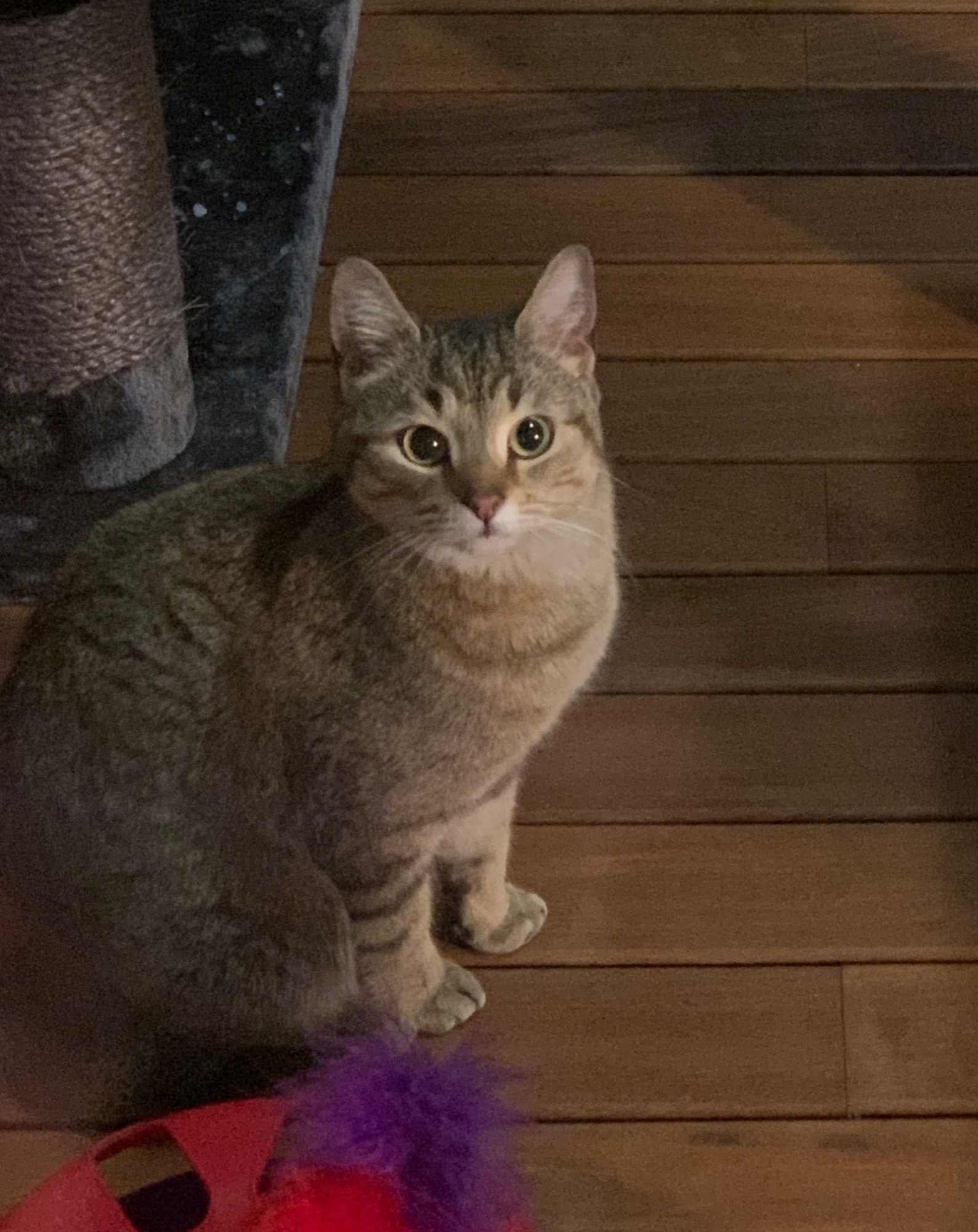 She doesn't have a particularly striking coat like a Bengal but she is chipped as a Bengal and definitely has that Bengal personality. She would be better as a solo cat so she doesn't have to share your love and attention.