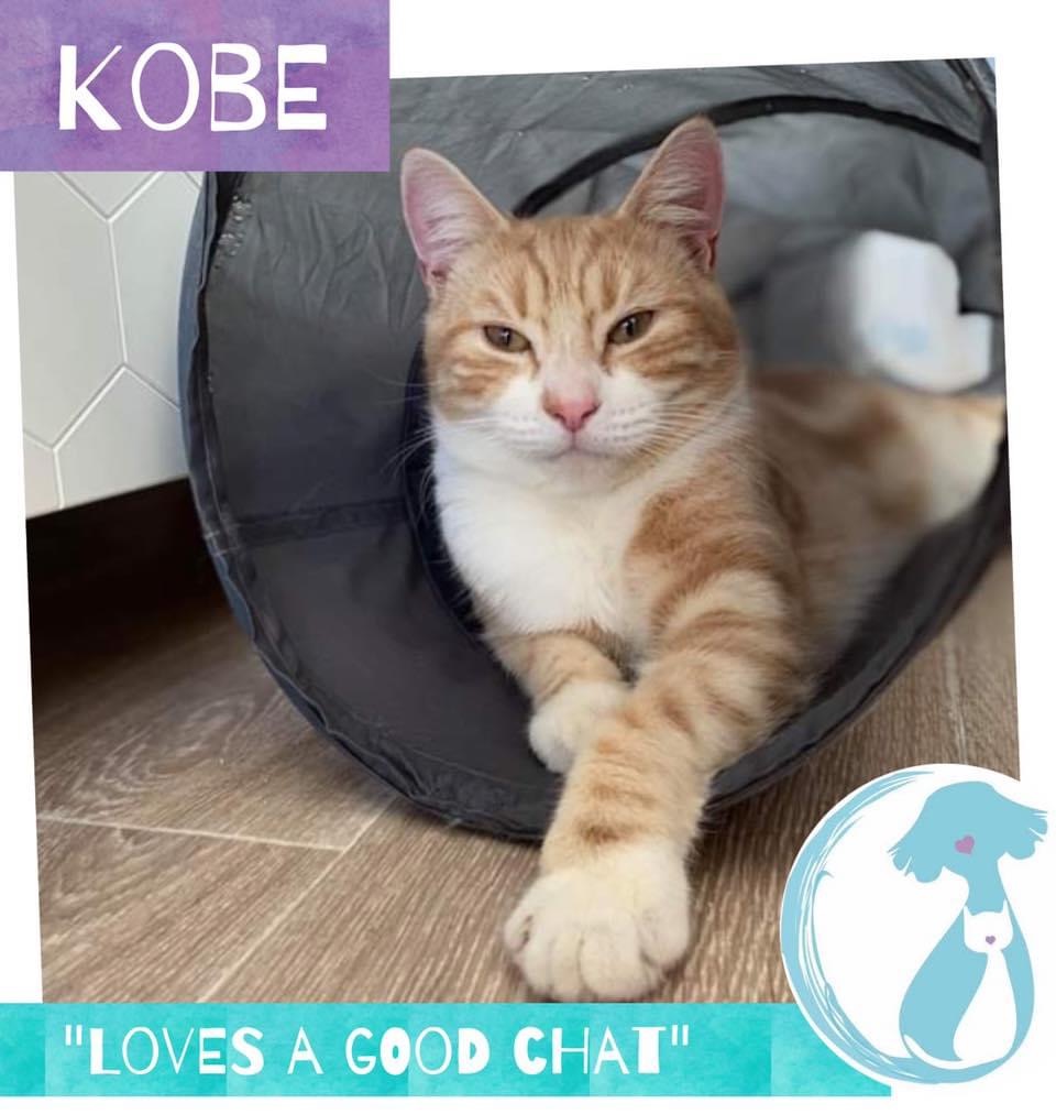 Kobe is a beautiful young kitty looking for his forever home! He can be shy at first, but once you've earned his trust he'll happily follow you around chatting quietly about his day and hanging out nearby.
