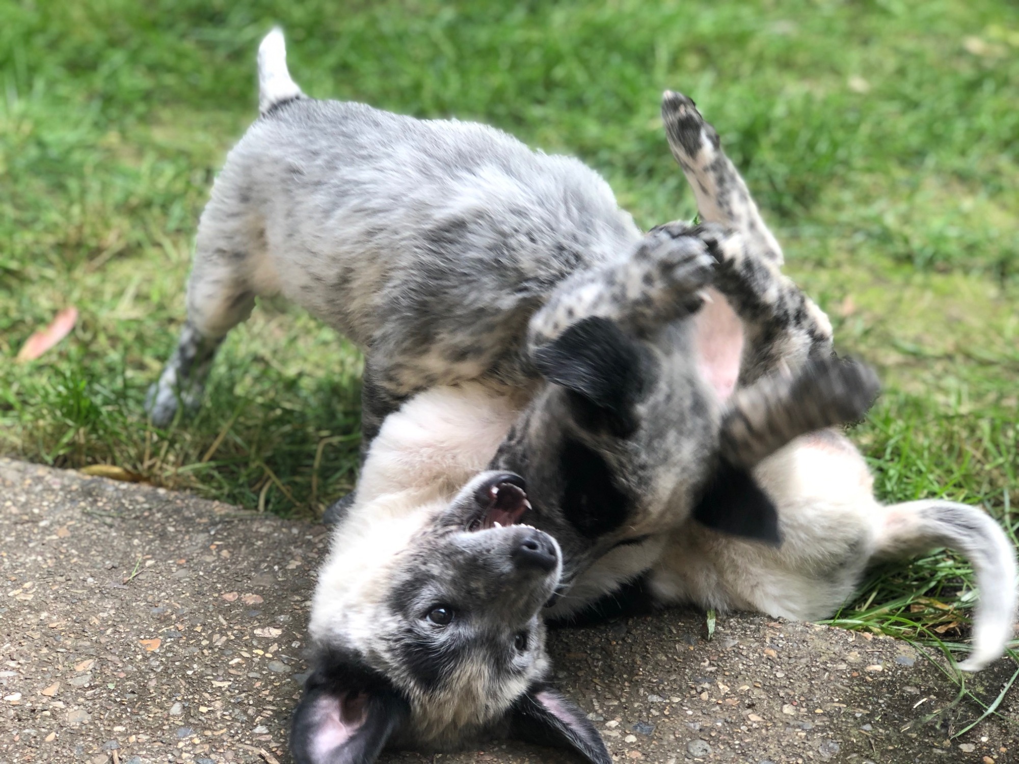 I do really love company, and I'll have a bit of a sook if I know you're in a different room and I can't get to you. I'll need someone with patience to teach me to be okay by myself, but I'm young and ready to learn! I'm otherwise quite confident. New things excite me and I'm very curious about everything! I would love to keep experiencing fun new things to encourage my curiosity and keep my confidence growing. I would really love another doggy friend to play and grow up with.
