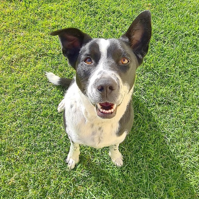 Although Tam is happiest when she is with her people, she is learning to enjoy time outside alone, sun-baking and playing with her tennis ball. She enjoys sniffing and running around the yard with her toys, so she would benefit from a bit of space for her to play. Given her mix of farming breeds, Tam will require daily physical and mental stimulation to ensure her body and brain are kept active and healthy.