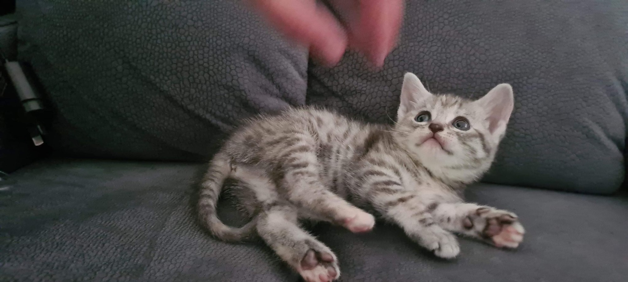 Reece is 6 weeks old and ready in a few weeks time .... She is very sweet and loves to roll on her tummy to play .... she is a silver grey tabby .... holding deposit is required ... LOCATION TOOWOOMBA ... carolangelsrescue@gmail.com for more info