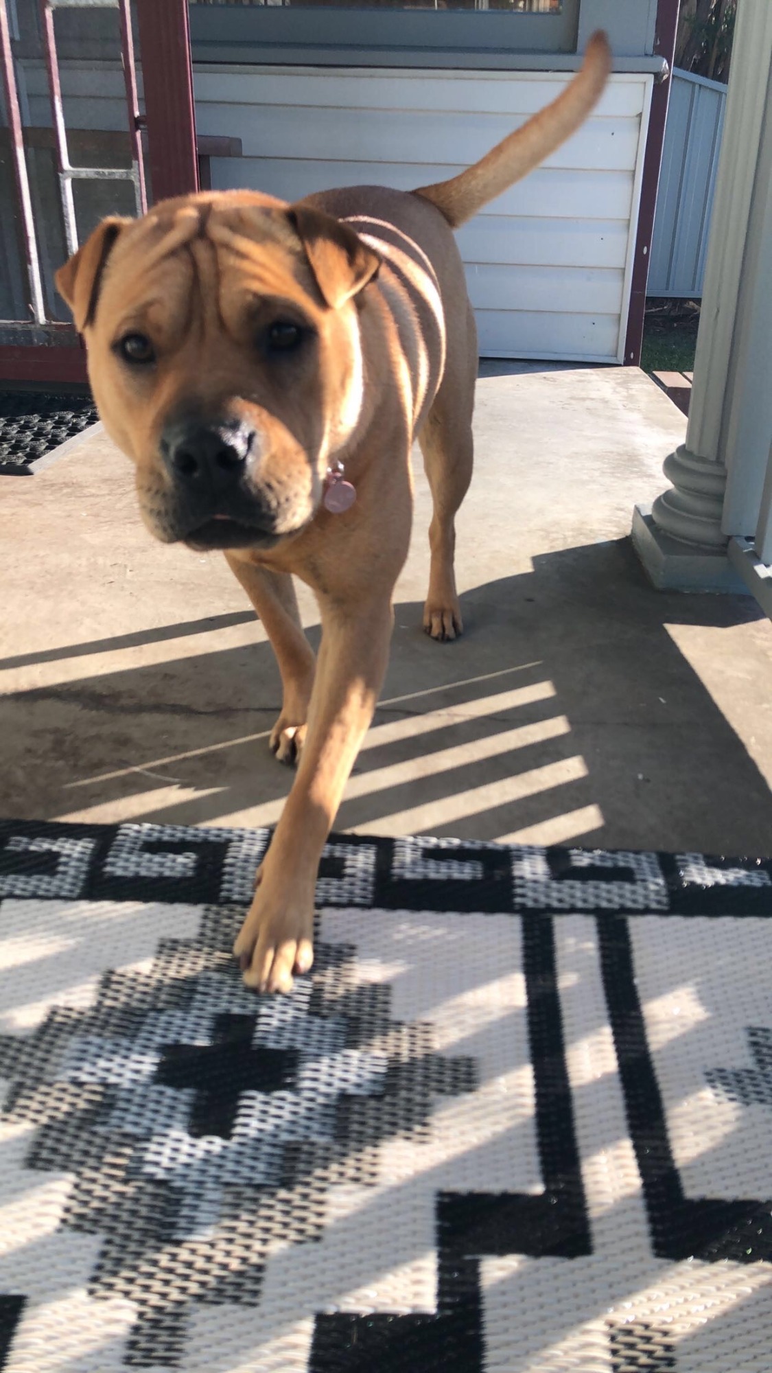 Meet Ellie, a 16-month-old female Shar-pei x Staffy. Ellie is a playful medium sized dog that loves her human companions. She loves to play in the yard as well as chill out on the lounge and have a cuddle.