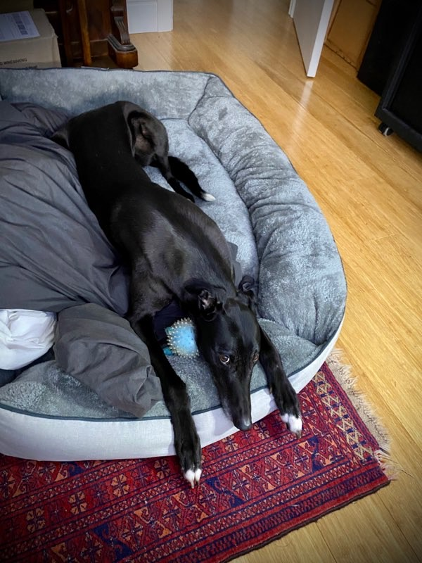 Dogs are pack animals and Greyhounds, in particular, are very familiar with being surrounded by other dogs in their racing kennel environment. For this reason, when left alone without people or other dogs for company, they can be prone to separation anxiety which can manifest in destructive and/or noisy behaviour. Yes, they may "grow out" of it after a few weeks in their new home, but why put the dog through that stress to ultimately live all day alone, while everyone is at work? As a result we do not rehome dogs into households where they are left on their own for more than 4 hours per day, without either people or another dog for company.