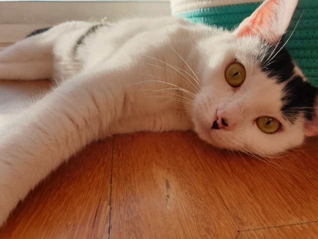 Millie boy would be suited to a home with a cat friendly dog or a more confident cat who will give him boundaries. Millie boy will give you a good hard nip if you upset him, so be warned! He can be good with kids, but probably best to only be around older or very cat savvy kids that understand how to give him his space and not push him too hard. Millie Boy is an adorably naughty teenager with attitude who'll make you laugh and annoy the heck out of you in equal amounts. REady for this cute boy to be part of your family? Submit an enquiry and meet our dalmation cat goofball now!