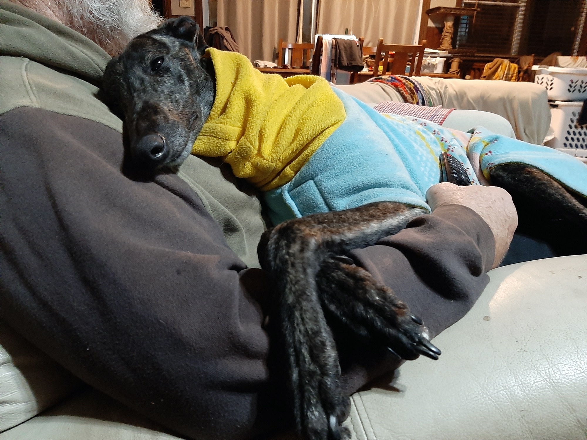 She does enjoy being around people and will take any chance she can get for a snuggle on the couch or to morph into a lap-dog despite her size.