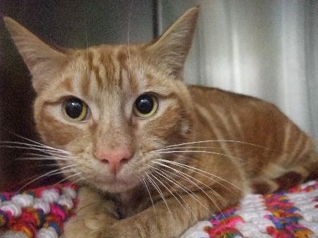 Hi my name is benjamin and been told i am very handsome! i was surrendered over to the cattery as my owner had too many cats and could not look after us all. I can be very shy when i first meet you, but once i feel safe i will come out right out of my shell. I am reall smoochy, and i really love a good belly rub and will purr purr purr. I also give the most awesome headbutts when i'm comfortable with you. I am just an all over lovely young man! if you have other cats at home that would be fine as i have lived with many a feline. As i am ginger with a pink nose i need to be indoors only. If you would like to meet me i am here in the cattery from 9:30 - 3:30 daily or call 9321 7240 for more info. Can't wait to meet my forever family, would that be you?