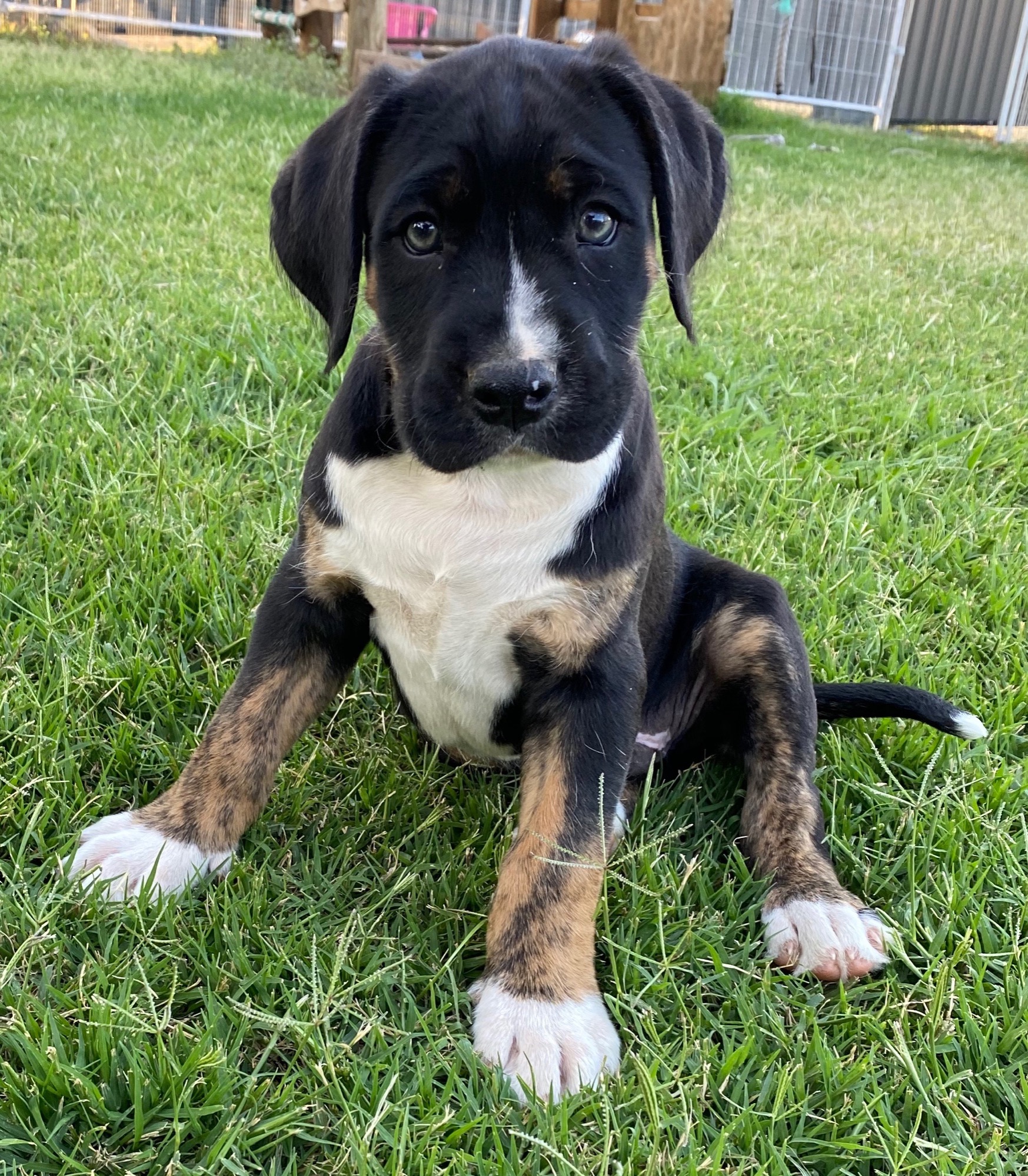 Kingsley is a relaxed fellow he will be a big boy being boxer x wolffhound, he adores his brothers and plays well with the other dogs he is learning to crate train and doing well.