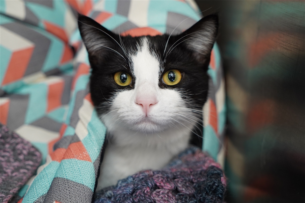 Marshmallow is a lovely, but shy boy who is looking for some caring humans to love and take care of him. He loves to have a nice spot to hide, and you'll often just see his little head poking out from under his blanket. Marshmallow's new home needs to be indoors only, and be relatively quiet - nothing too crazy or busy. He will be best as an only pet, as other animals tend to terrify him. He could potentially live with sensible and respectful children over the age of 10. Marshmallow hasn't been too comfortable with cuddles here, though we think it's because he's a bit nervous in the shelter. He does like to give you head bumps and rub against you. Given some time in a new home, he will likely grow into a very affectionate and loving boy. If you have the space and time to help this young man grow into a confident cat, then book an appointment to meet him.