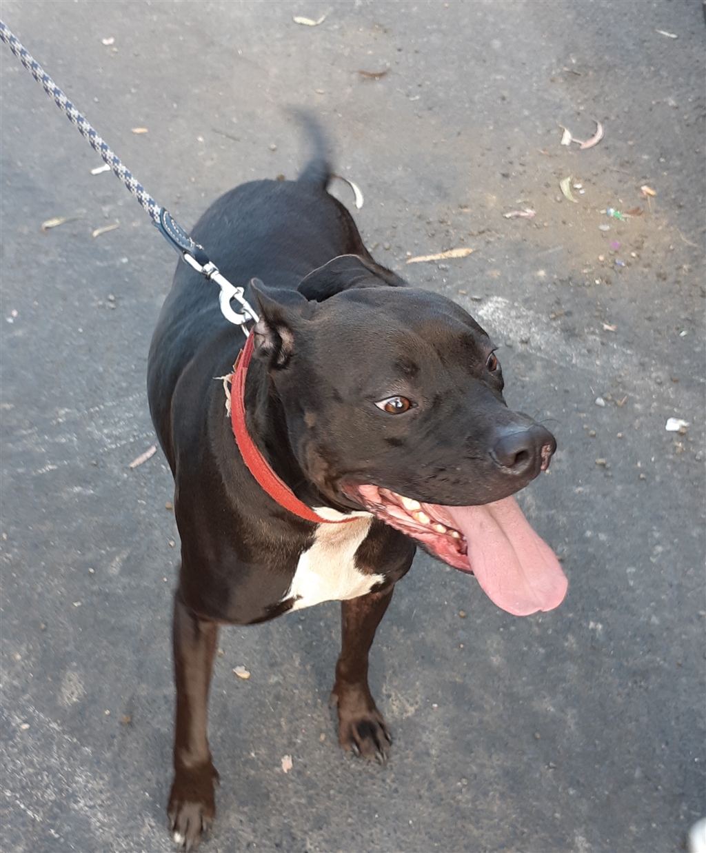 He has a lovely personality but has had no training and is very strong. Good with older children (aged 12+). He particularly likes women (as his owner from when he was tiny was a lady), seems to get on well with cats and other dogs (though slightly in their face to begin with).