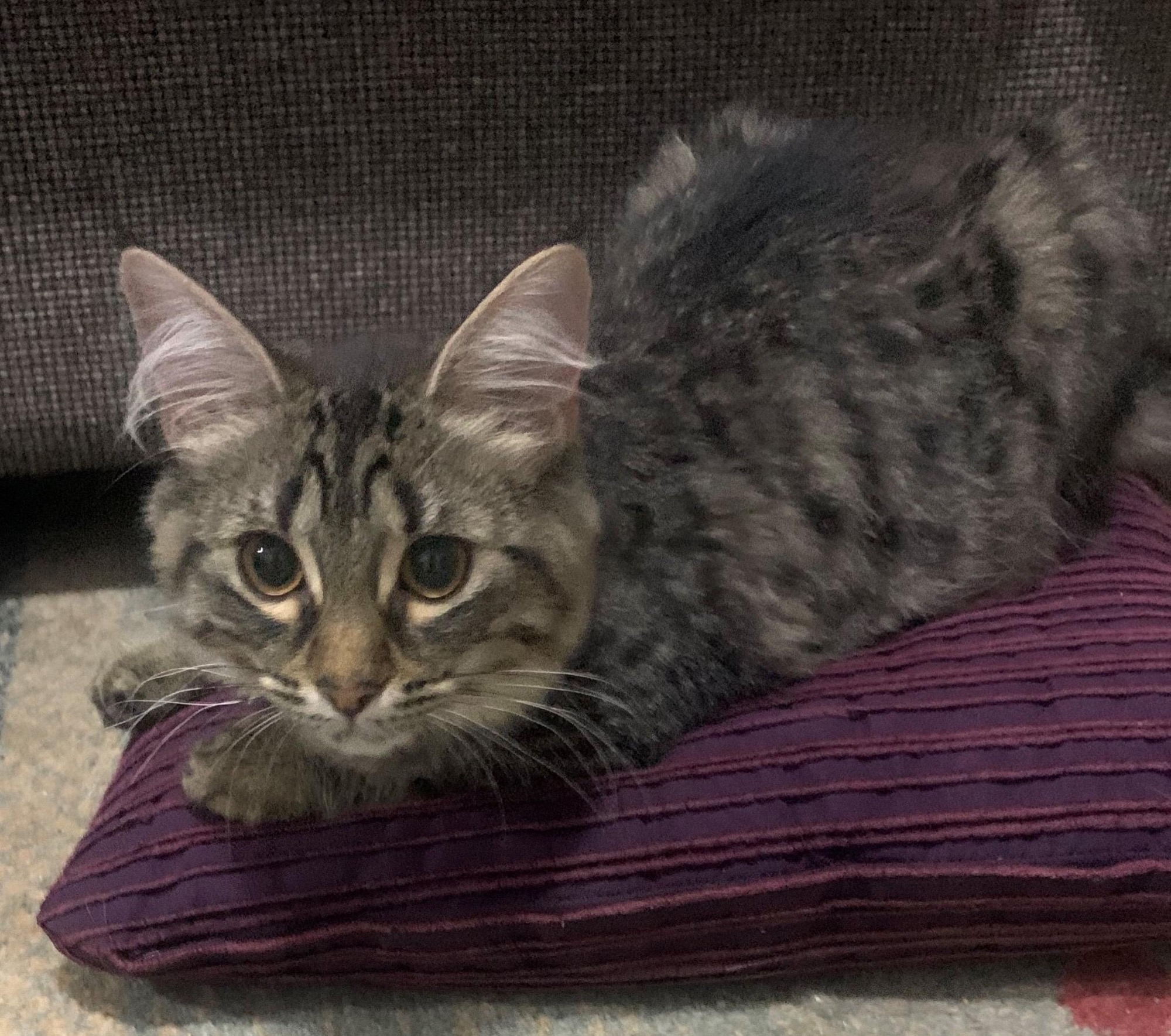 Cherry is a gorgeous 4.5 - 5 month old medium haired kitten. She gets on well with kids and other cats.