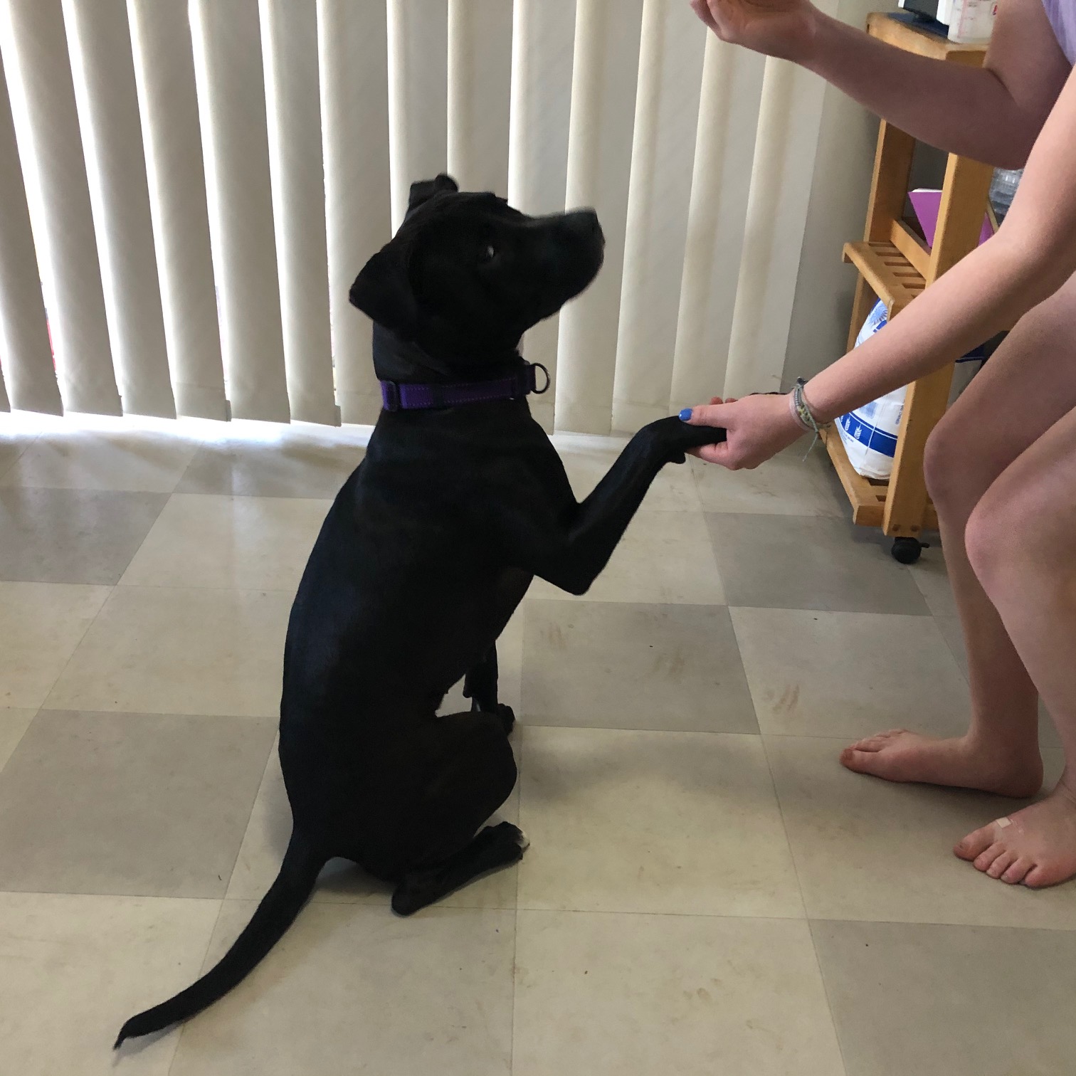 Within the house and yard her training has progressed well. She sits and stays quite well and can now shake with both hands. Pippa will sit and stay so you can go out the front door. She is not quite as good at sitting when you come home. Learning to drop seems to be pretty tricky to, but she keeps trying. Shes a smart girl and with the perfect dog savvy home, she will progress quickly.