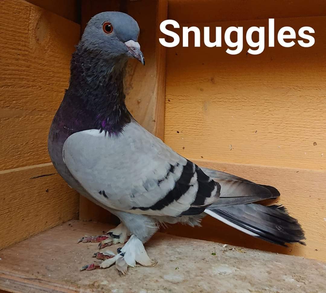 This shy, but gentle girl is one of our more friendly birds. Her breed is a Turkish Tumbler, and like her name suggests she doesn't mind being a good cuddle, given you are nice and calm with her. She came to us after being found with her flight feathers cut and in a random backyard. We are hoping she can find a special home with or without another bird friend.