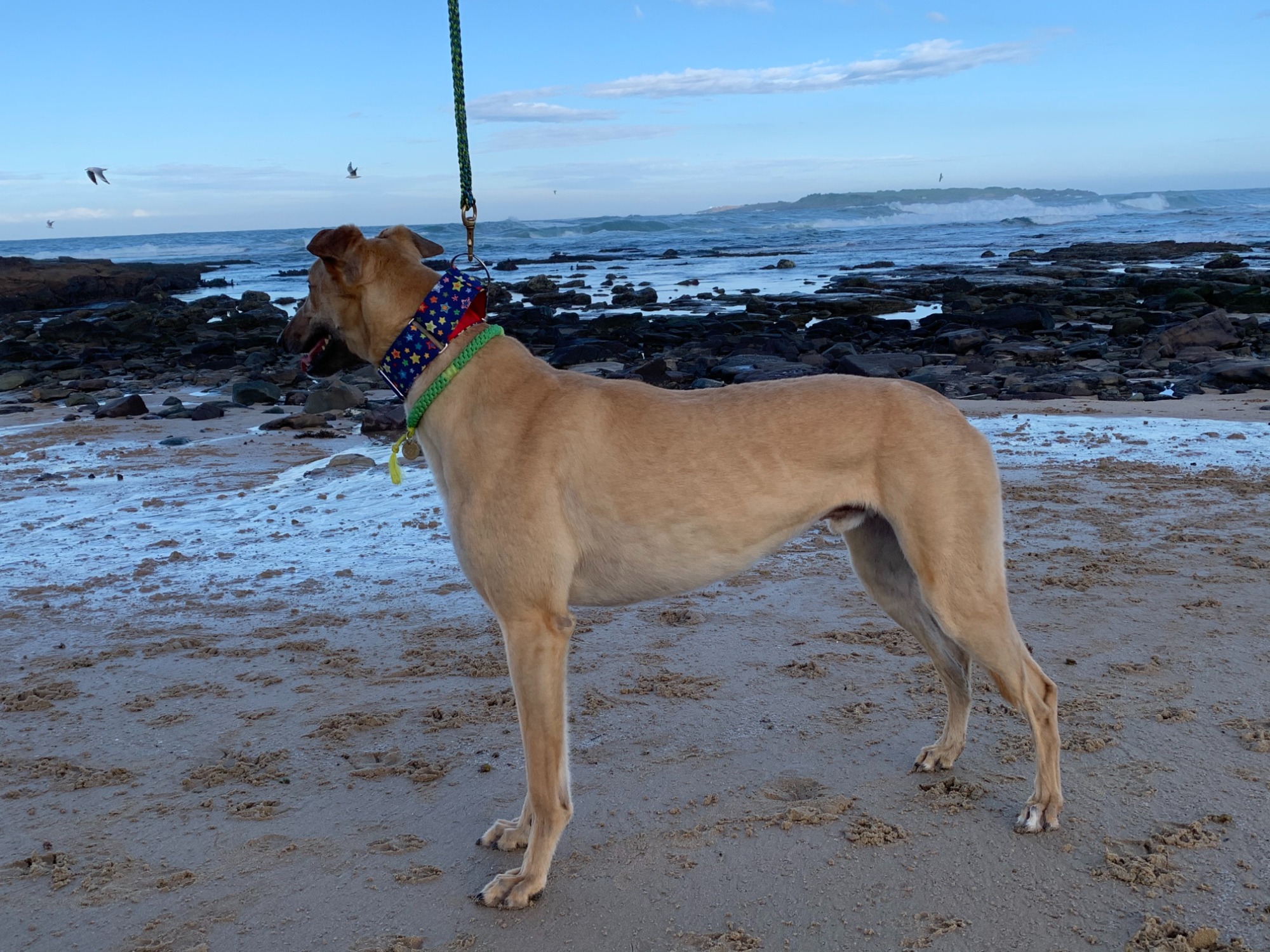 Ace is beautiful, lovely-natured and friendly towards all the people and dogs of all size that he's met. He is currently in foster care with foster pawrents and three foster greyhound sisters, and is very happily settling into life as a pet. Around the house, he has been very quick to learn things and his manners are improving daily. He even sleeps through the night and greets you excitedly in the morning with powerful sweeping tail wags. Whilst he enjoys the company of his siblings and his humans he is also quite adaptable to spending some time alone.