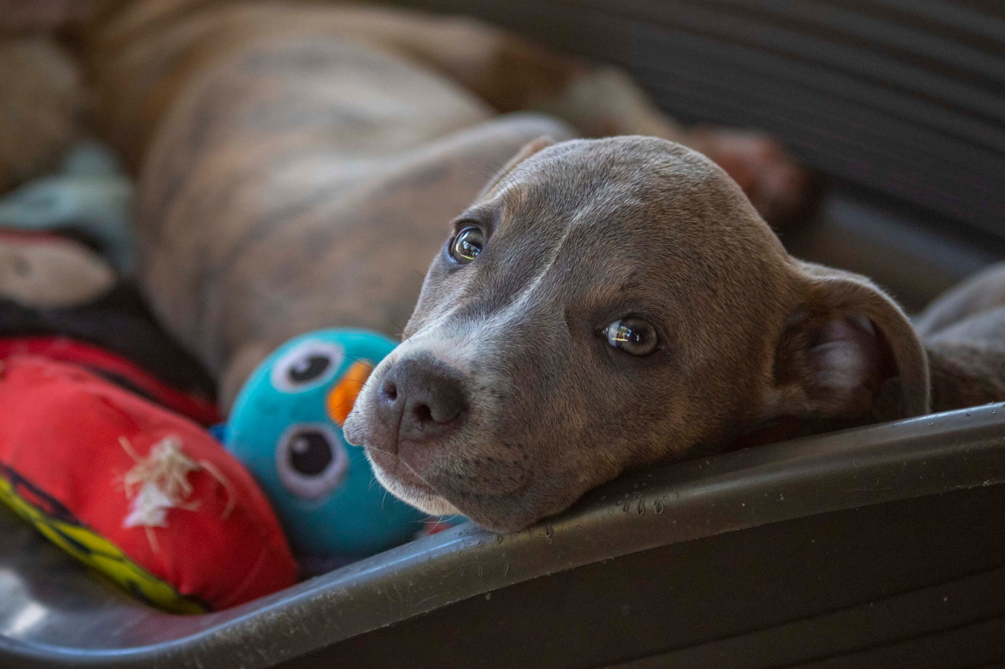 I'm Mocca and a 9 week old staff x girl. Im pretty chilled and a laid back sort of girl. Of courseI love cuddles and will need on going training. As I'm still a baby, I need 3 meals a day so you'll need to have someone home most of the time .
