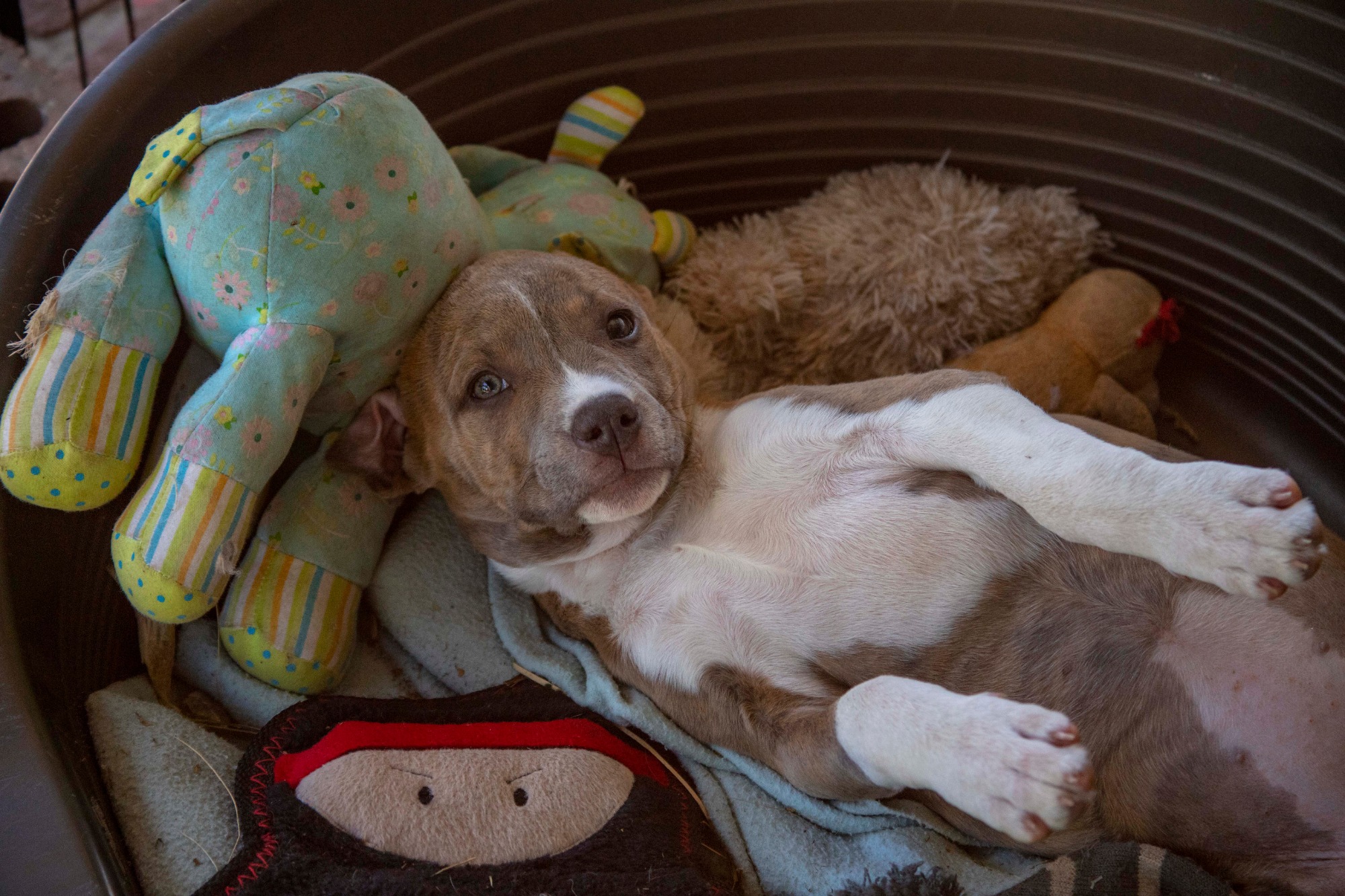 I'm Espresso and a 9 week old staff x girl. If you like a laid back, smoocher then I'm your girl. I am your typical puppy loving attention and plenty of snuggle time on the couch. I need to have someone home most of the time to feed me throughout the day and keep me company
