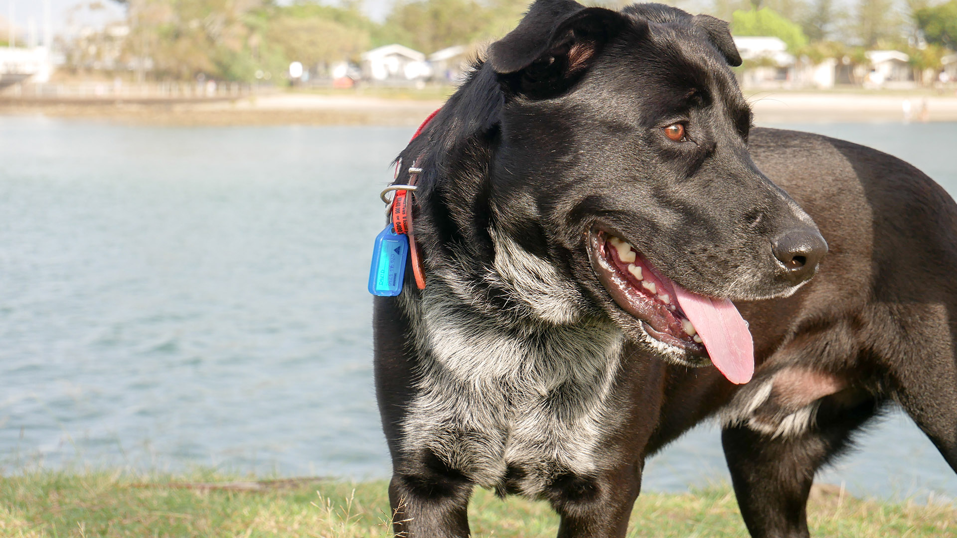 He loves to go for a walk around the neighbourhood or for a run if you are keen to burn some energy together. Two walks a day and some playtime (he loves a good amount to keep him relaxed the whole day. He will need a big-dog-savvy person to walk him or a good front harness or Halti as he can be quite strong pulling the leash. He gets super excited (but not aggressive) when he sees other dogs and needs some further training in this area. If you have other dogs in the house, he might need some time to adapt as he doesn't know his own size and strength and he's a goofy boy.