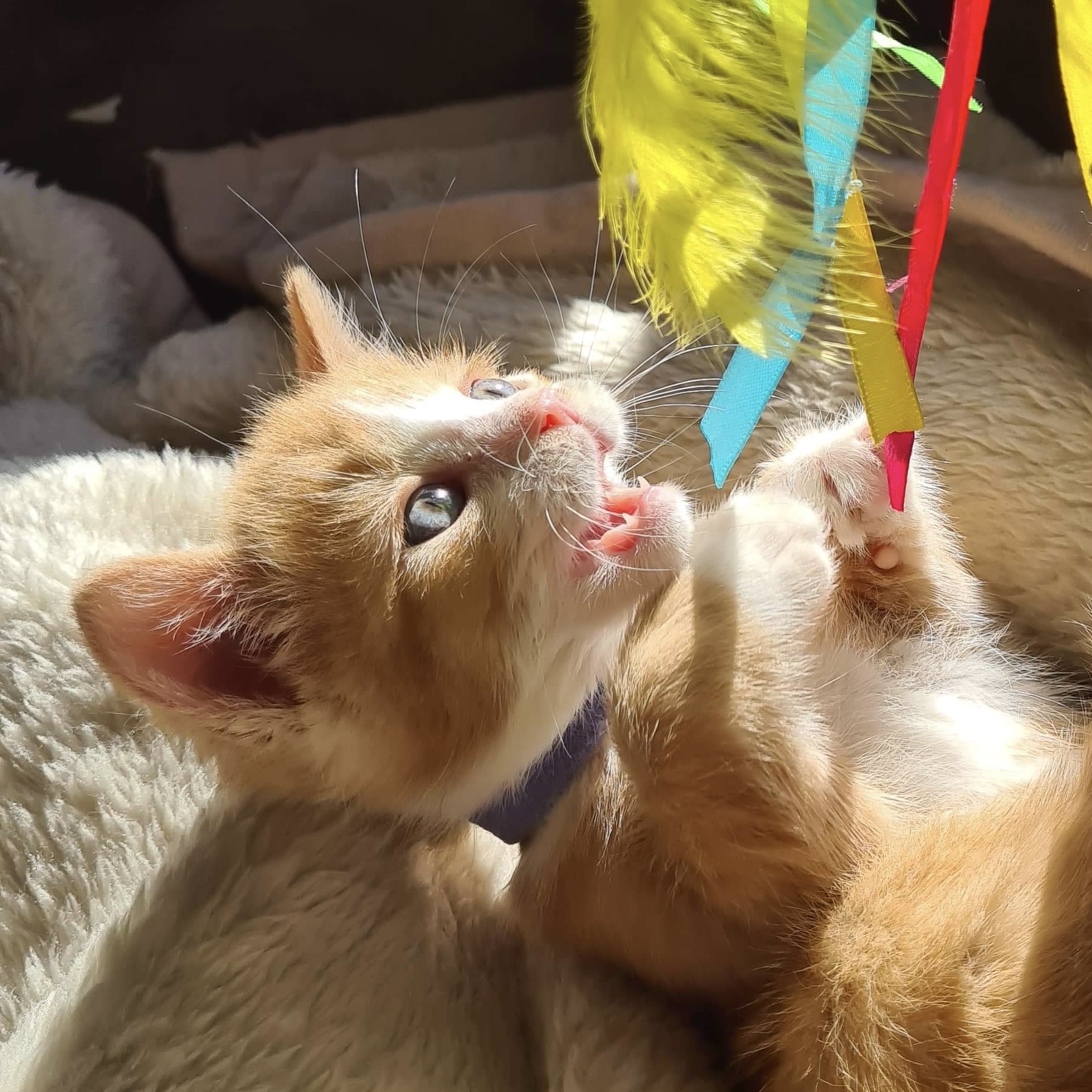 Clancy is quite an energetic kitten who loves to instigate play fights and wrestles with his siblings. He loves his toys, but still learning his claw manners, so older children would be better suited for this boy. Clancy enjoys the company of his people, and will find a cosy spot right by your side when it's nap time. He loves his pats, and is also quite the purr machine 💕