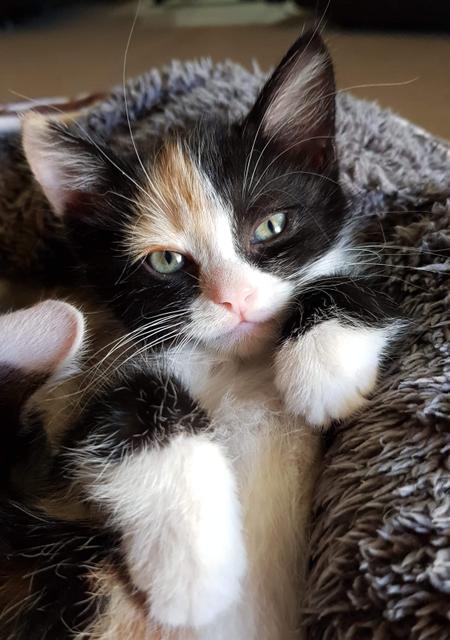 Zendaya is a medium haired kitty has the striking torti look and is the more shy of her siblings. An older resident kitty to show her the ways, and help build her confidence would be favorable. Lots of gentle handling and attention will help her come out of her shell.
