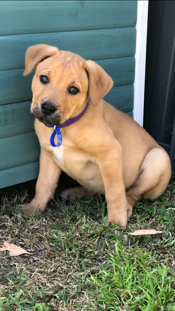 Hi My name is Mystique and I'm a female 11 wk old Mastiff X puppy and I am looking for my forever home. Im still quite young but I love to rough and tumble with my new foster doggy friends in a lovely big yard. Sometimes I get a bit enthusiastic and will need some puppy training so that I am the best pup that I can be. I am currently crate training at night time and doing really well, I also like to snuggle up with my toy puppy when it’s time for bed.