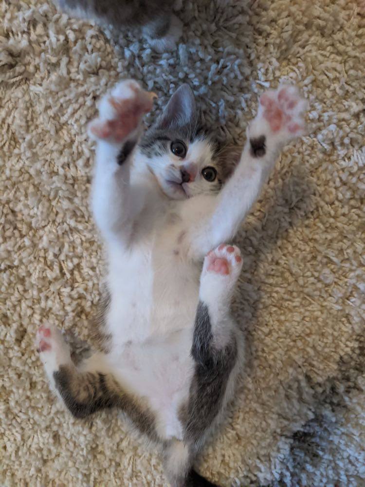 Hi, I'm Katsu! I'm one of a litter of 4 kittens hand raised by one of the vets at Wakeley Vet Hospital. I love exploring, playing pounce with my siblings and smooching up against you on the couch when I'm all tuckered out. I am now 8 weeks old, and ready to find my forever home. I would do best in a household with no other pets, but am available for adoption with one of my siblings to the right owner!