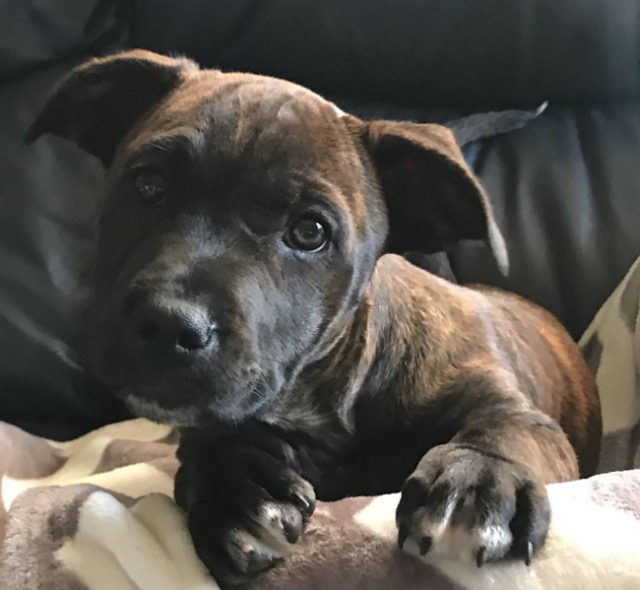 Staffordshire Bull Terrier: Even though Staffys look tough they are mostly affectionate and loving dogs with family - known as Nanny dogs they are great with children if brought up with them correctly. They love to be with their people and do not cope with being alone, with you they are happy, therefore they are not outside dogs. They are energetic and need a really good work out every day. Early training is essential with this breed especially consistent and positive socialisation with other dogs - a remnant of their origins as a fighting breed means they can be unfriendly towards unknown dogs. Bold, intelligent, reliable, and loyal, this breed is not for novice owners.
