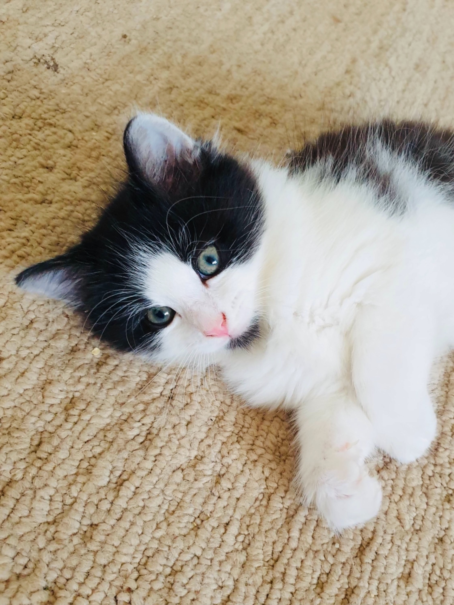 Teddy.....This stunning little boy is just 10 weeks old and a Domestic Medium Hair kitten. He's cheeky, adorable, and super playful! Teddy is quite a confident and independant little kitten, who enjoys the company of both his humans and feline friends....on his terms. Whilst he gets along well with his sister, Willow and the other cats in his foster home, he would much prefer to wrestle and play with them, rather than be their snuggle buddy! Teddy is happy to lay next to you on the lounge and sometimes on your lap, but again, this happens on Teddy's terms.