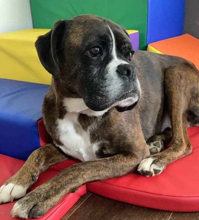 Introducing the beautiful Mikey. We don't know a lot about Mikey, but he is a 7 year old brindle boy who just loves to be around his people.