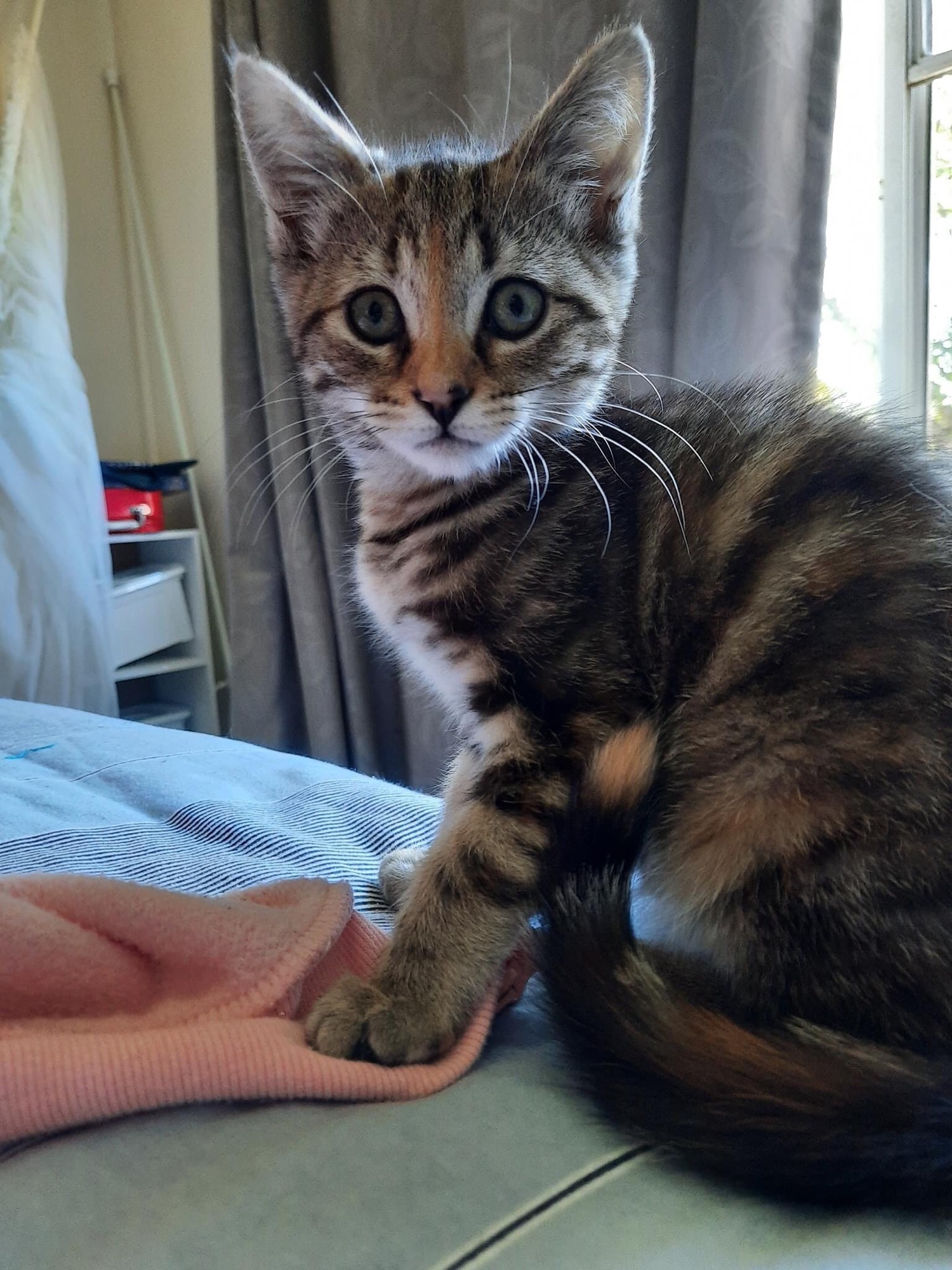 She is currently residing in foster care with a teenager, and a 3 yr old male cat.