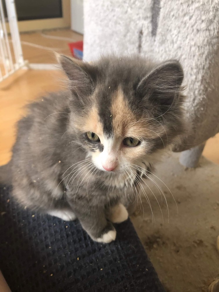 Hey there! I’m Twix! I’m the most loveable and playful little girl you’ll ever meet! I love playing independently if I have lots toys. I do love head scratches but i’m not a big fan of being picked up. I have lived with other cats before, so I should be alright with a cat brother or sister, although that was a long time ago, so just keep an eye on me and let me adjust. I don’t know what a dog is, so I’m unsure whether I’d be okay with living with one, although if you give me time to adjust, I’m sure I’d be okay with a dog brother or sister. I tend to like to chew on things like wires, so please keep an eye on me, and give me some training so I learn not to chew on things! I can’t wait to meet you in a couple of weeks once I’m ready to be adopted! See ya later!