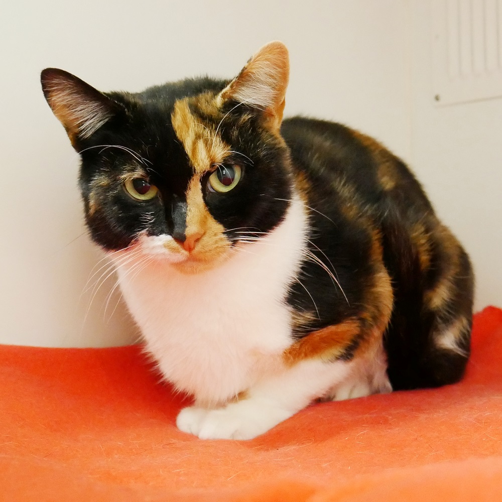 Vera is a timid lady when meeting new people and in new surroundings. Once settled she is friendly and enjoys attention, of course on her terms as she is a Tortie!. Vera requires a quiet home with routine as she stresses with change, a home without children but with plenty of love and patience.