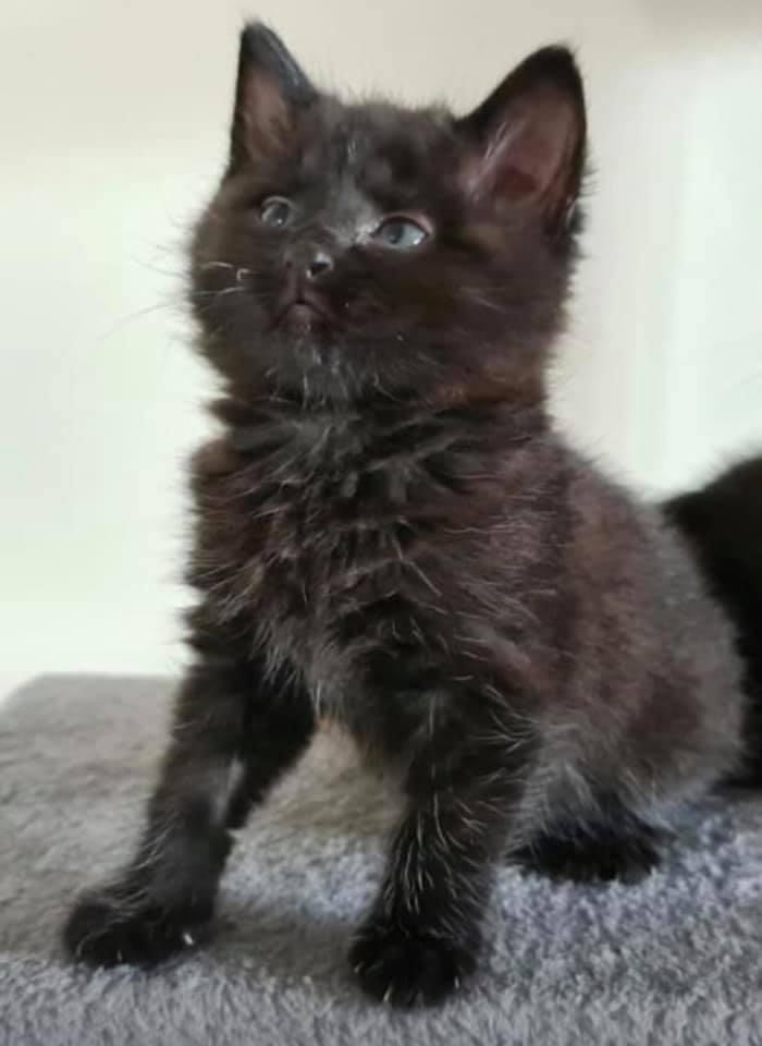 Inky is a cute little fluff ball. He loves to play with his siblings and do zoomies around the house. He is very vocal and will meow until he gets what he wants, whether its food or cuddles.