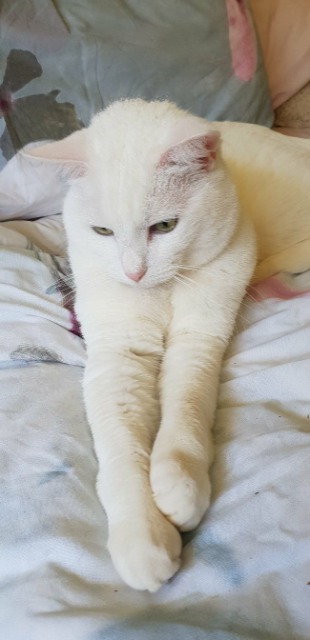 I'm getting on ok with my foster brofur, but I'd really come out of my shell in a home without any other animals. If you want a decorative white cat with a smoochy personality that loves cuddles, don't hesitate! Sent that enquiry now and let's meet!