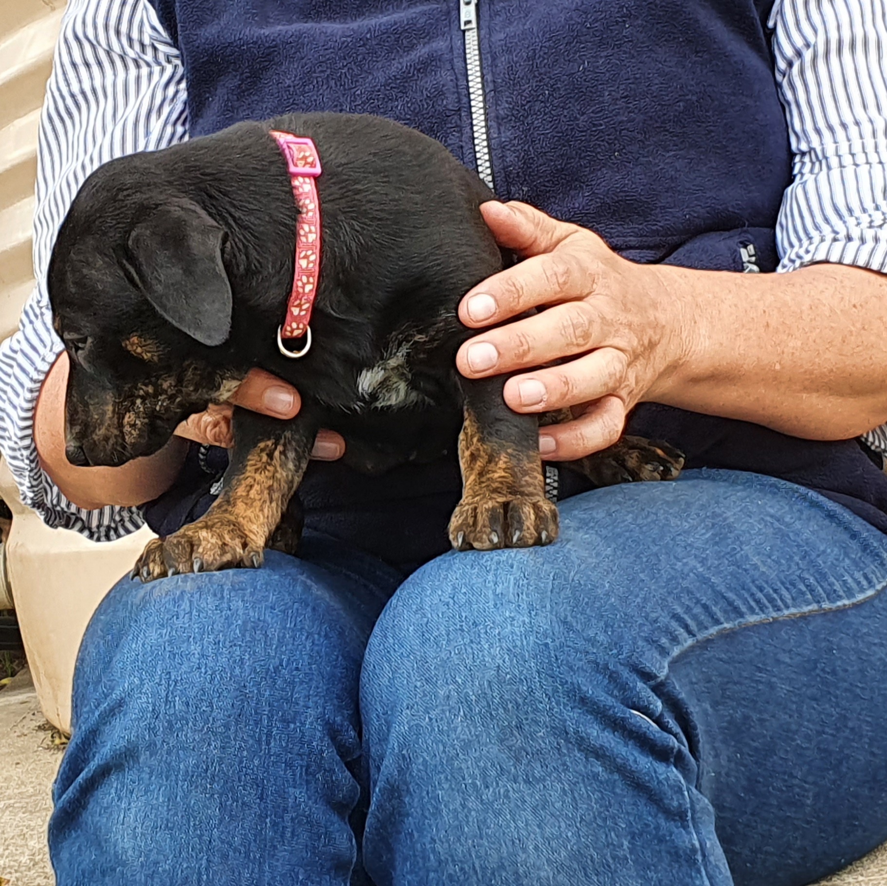 This gorgeous girl was one of Stella's six puppies. Stella, a black and tan kelpie, couldn't wait and her puppies were born in the pound. We do not know what breed(s) dad was - Stella doesn't kiss and tell...