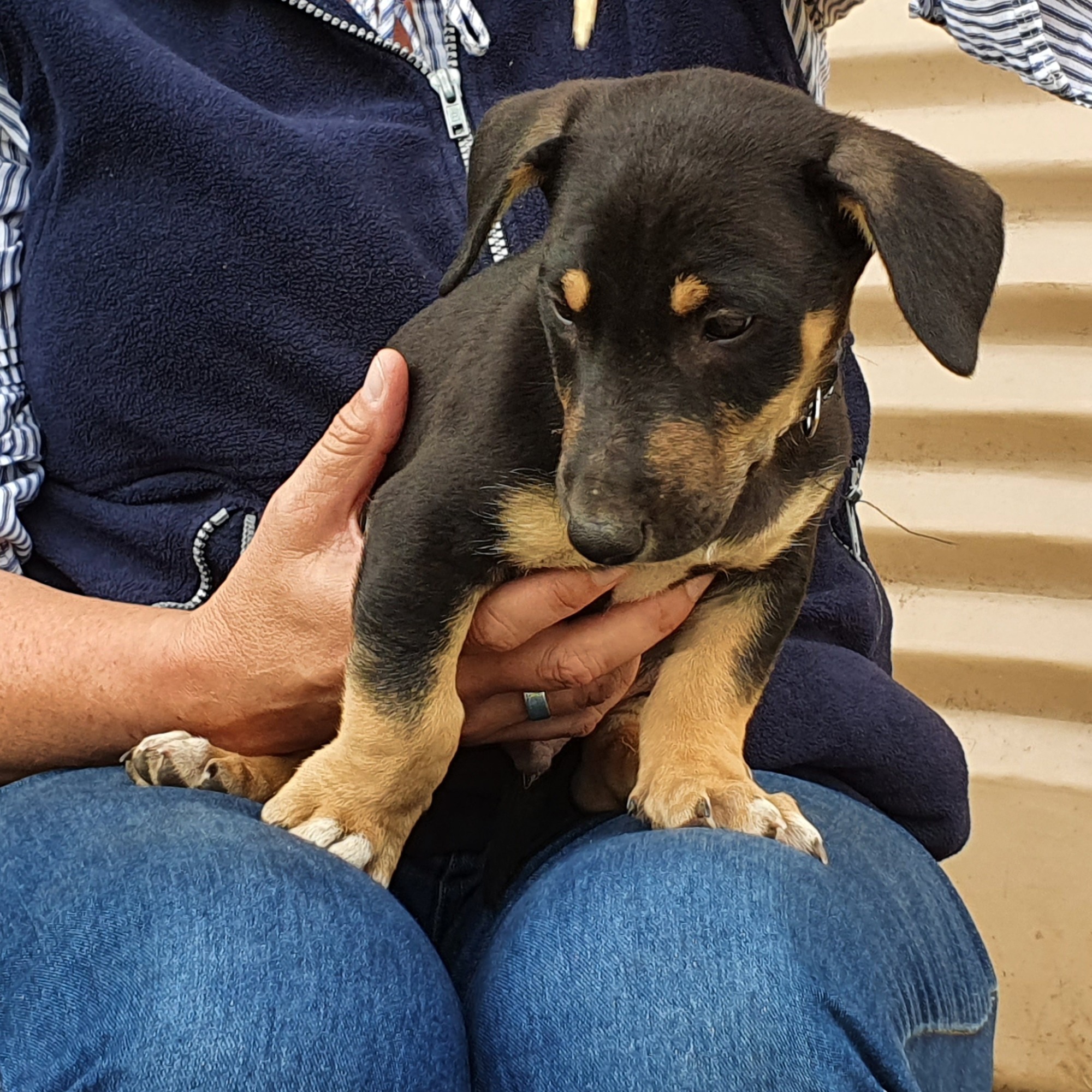 This gorgeous boy was one of Stella's six puppies. Stella, a black and tan kelpie, couldn't wait and her puppies were born in the pound. We do not know what breed(s) dad was - Stella doesn't kiss and tell...