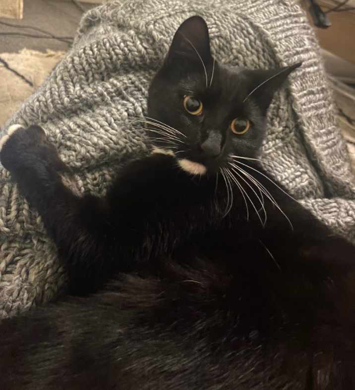 Socks is estimated to be between 1-2 years old, he acts quite kitten like really, he is a small cat who really is cute as a button.