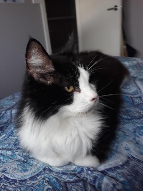 Roger is a loving smoochy cat who is generally content to spend most of his day flopped on a soft surface sleeping. Although he starts of a bit shy/wary of new people, he warms up quickly. Initially, he will sit next to you on your bed or lounge, but once he gets to know you he will become a lap cat (provided you stay still, he doesn't like his human pillow moving). Roger enjoys being patted and will purr loudly, whilst also drooling! In particular, he loves head scritches. He doesn't like getting picked up and will voice his objections if you do. He has mostly out-grown his playful years, but will occasionally bat a ball around for a few minutes.