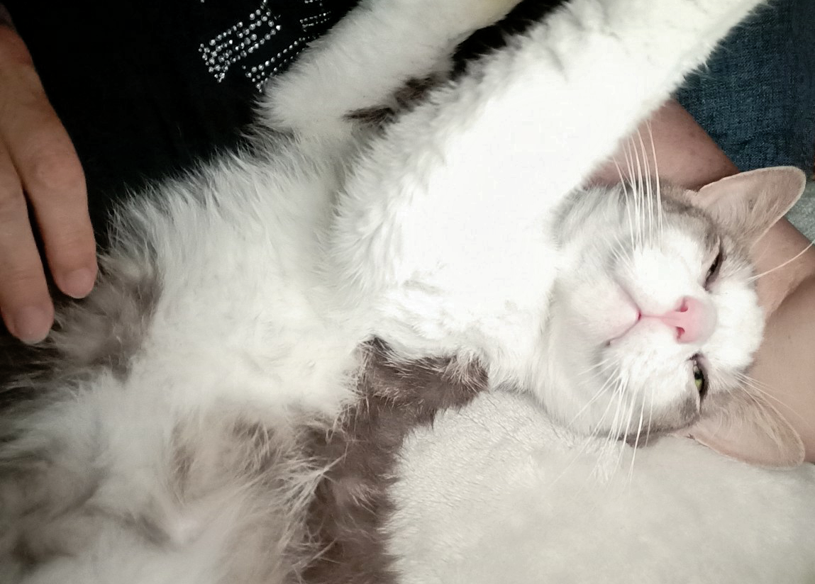 Dawson is a lovely smoochie muscular boy. He's very verbal (chirps to you to ask for pats), loves to be brushed and enjoys sitting on the lounge with you in front of the tv. He's also expert at head butting you to encourage you to stroke him.