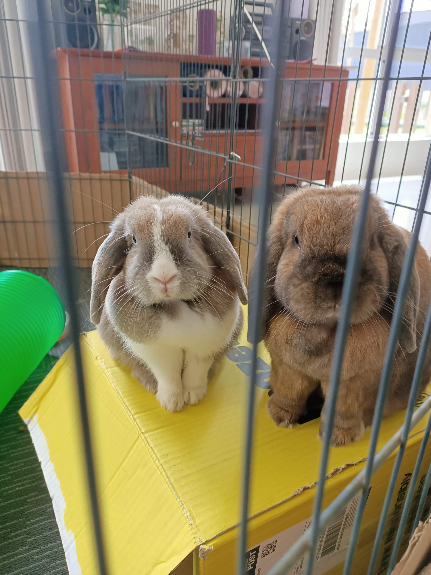 The first thing you notice about Bambi is her beautiful blue eyes! She has a lovely nature and always wants to know what you're doing. She loves head pats and cuddles and being with her husbun Bear.💜
