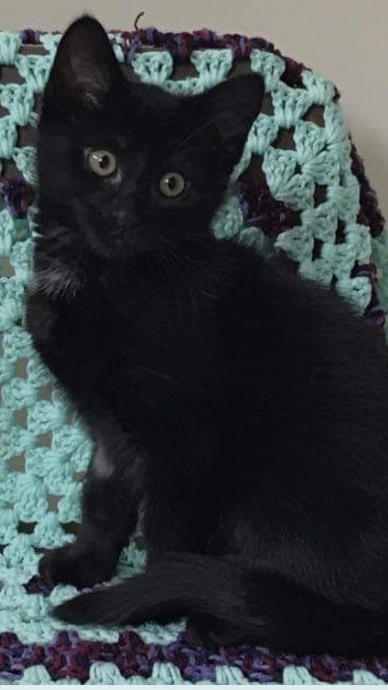Furlin has a beautiful all black coat with a small white tuff on his chest
