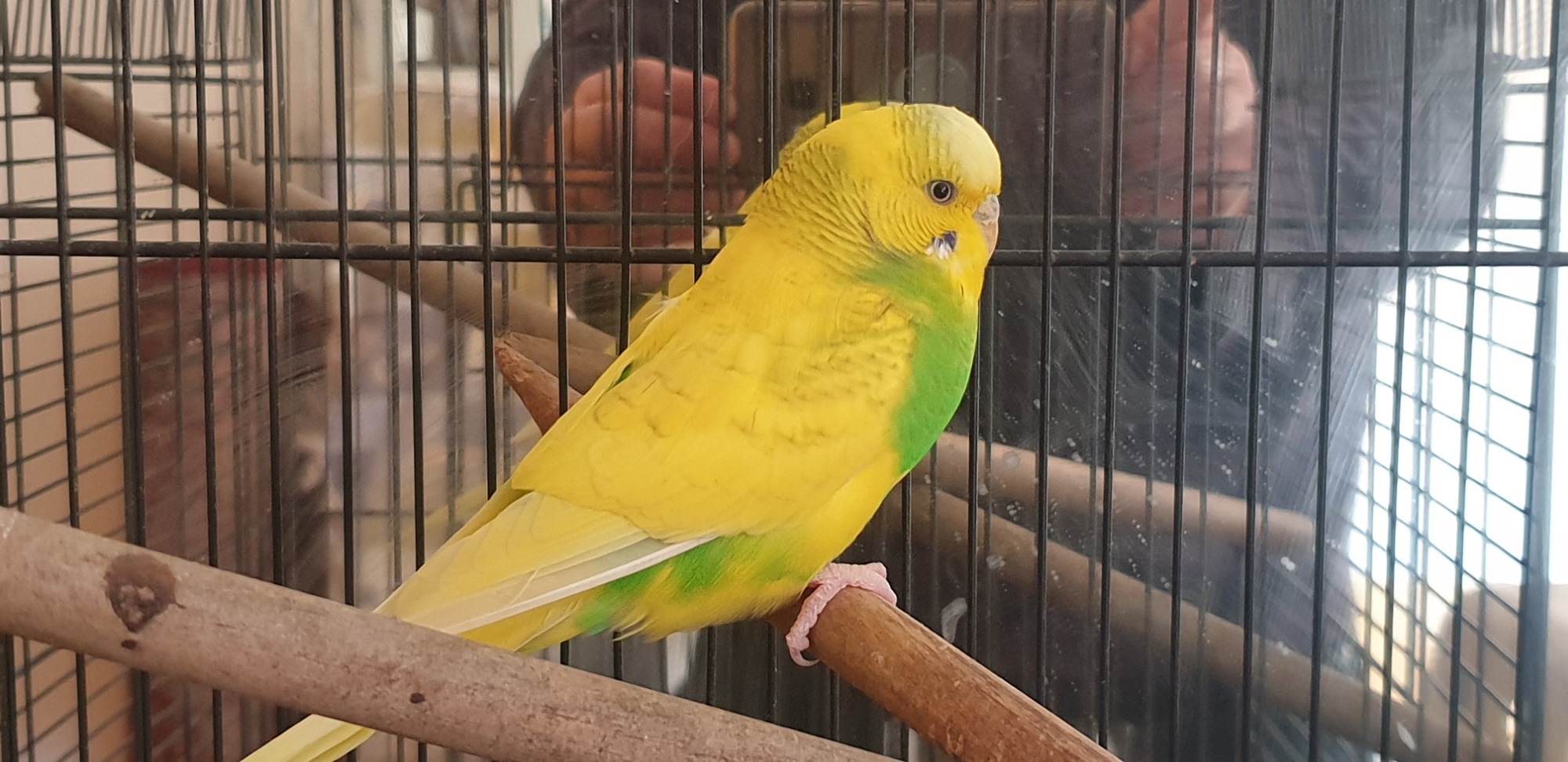 Mantis is a curious and energetic budgie who wants company from everyone.