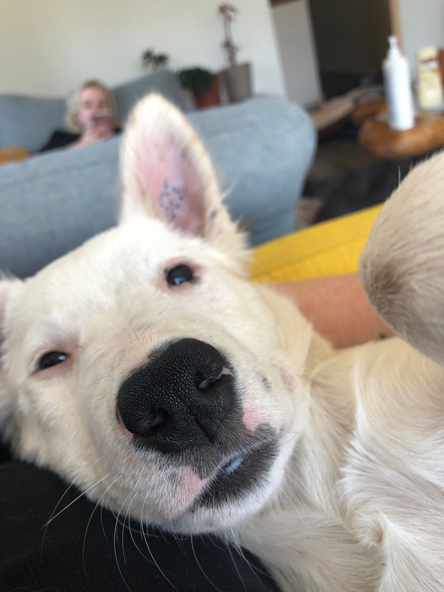 Angel was born profoundly deaf, which of course doesn’t bother her at all but does add an extra element of complexity to her training. In saying this, Angel is learning sign language really well and now sits patiently for her meals, sits on command and is fully toilet trained so can signal when she needs to be let outside. The main focuses of her training at the moment are to do with her vocalising, as she can bark if she can’t see her humans and gets upset if she is left outside even if she has the company of other dogs. We have been working on this throughout her time in foster care and is important for her training to continue in her new forever home. Angel will need to go to a new home with someone with deaf dog experience.