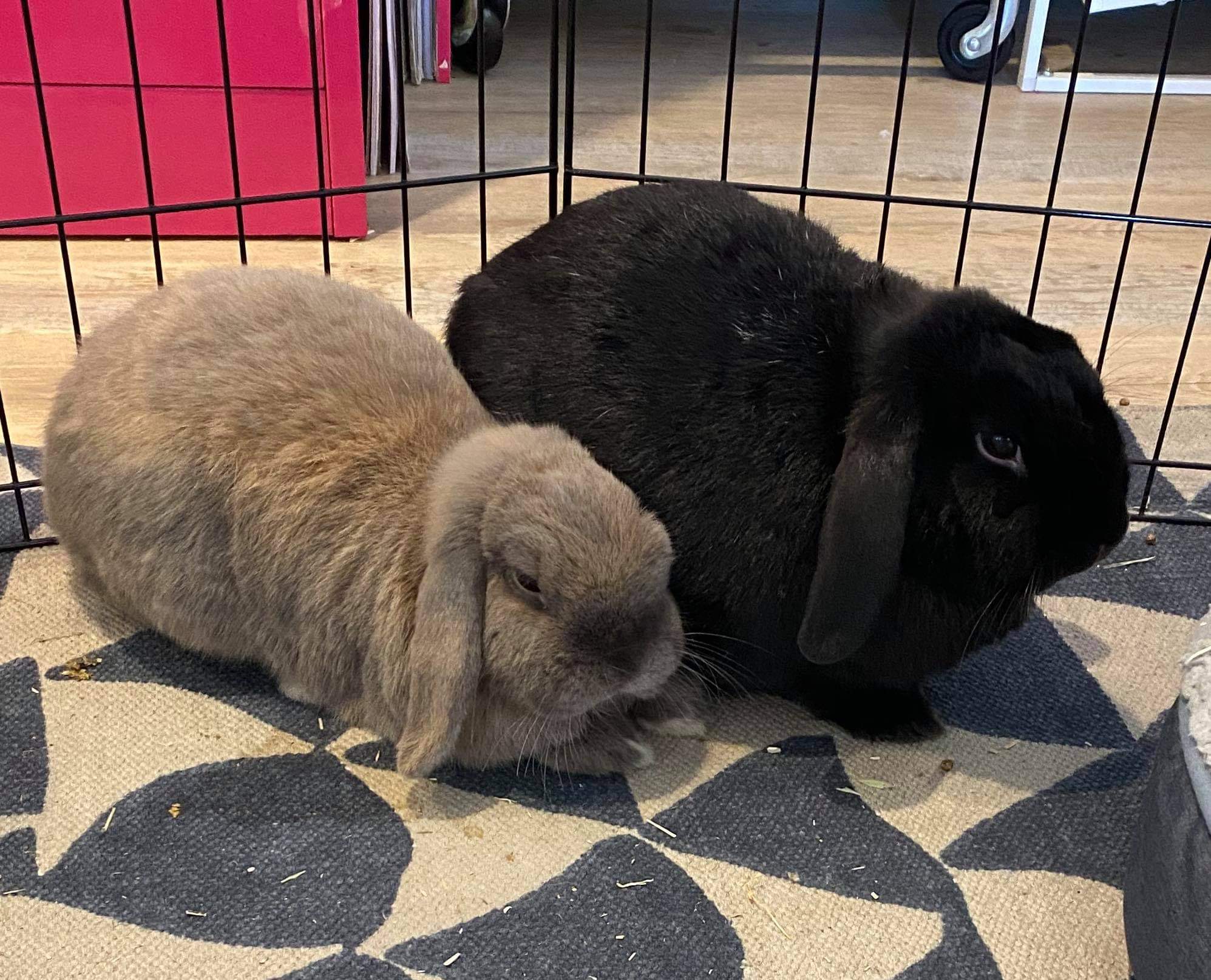 Poppy (tan) and Pablo (black) are the most gorgeous bonded pair. They were both initially shy, but thanks to their foster mum, are now loving being petted and getting carried around the house by the kids. They are perfectly toilet trained and would be the sweetest addition to a family or individual. They are beautifully natured, friendly little buns who are waiting for their new forever home.